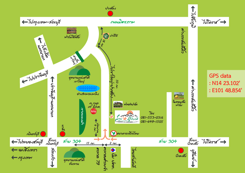 ใช้เส้นทาง 331 >>> ผ่านบ่อวิน >>> ผ่านแปลงยาว >>> บายพาสพนมสารคาม >>> เชื่อมต่อถนน 304 >>> ผ่านเขาหินซ้อน >>> ผ่านกบินทร์บุรี>>> อุทยานทับลาน(ปั๊มปตท.และ เวโรนาเมืองสไตล์อิตาลี) >>> ขึ้นเขาก่อนถึงตลาดศาลเจ้าหรือตลาด 79 >>> เลี้ยวซ้ายเข้าถนนเขาแผงม้า-เขาใหญ่(ปากช่อง) >>> ขับต่อไปอีก ประมาณ 4 กม. ถึงสวนภูมิมาลีอยู่ขวามือ
